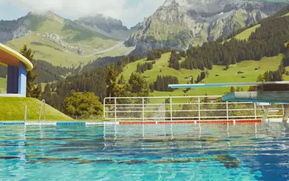 With Bauhaus inspired architecture you can test your nerve on the 3m diving board. The Gruebi at 1350m above sea level offers a 50m pool as well as beach volleyball and plenty of open space to soak up the sun and unwind. When staying at The Cambrian you can use it for free with your guest card.